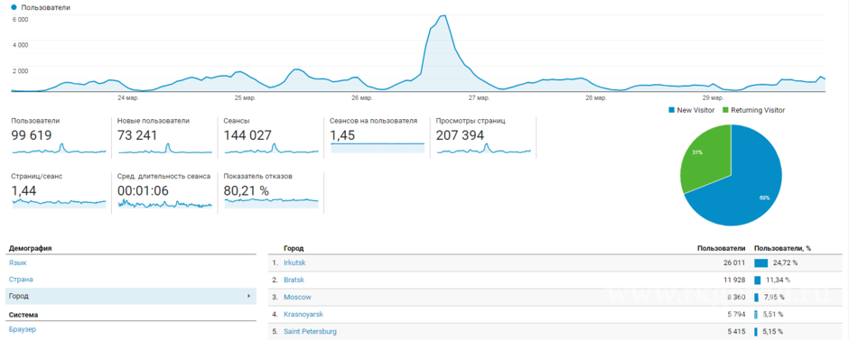 Ежемесячная аудитория наших площадок (сайт+соцсети+мессенжеры) составляет более 500 тысяч человек, более 50% - это жители Иркутска и Братска (по данным системы «Гугл Аналитикс»). Ежедневно только сайт «Города» посещают от 7-ми до 20 тысяч человек. Еженедельный охват постов в соцсетях «Города» - более 1 млн просмотров.