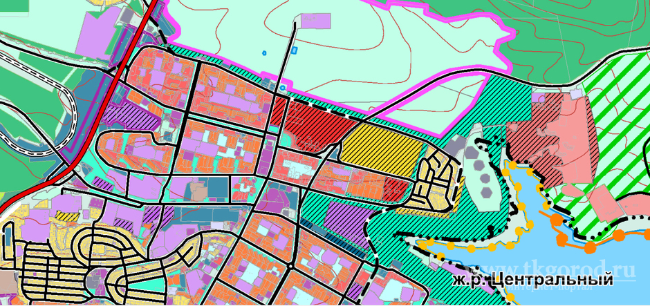 Фрагмент генплана Братска (указанная территория обозначена красным цветом со штриховкой)