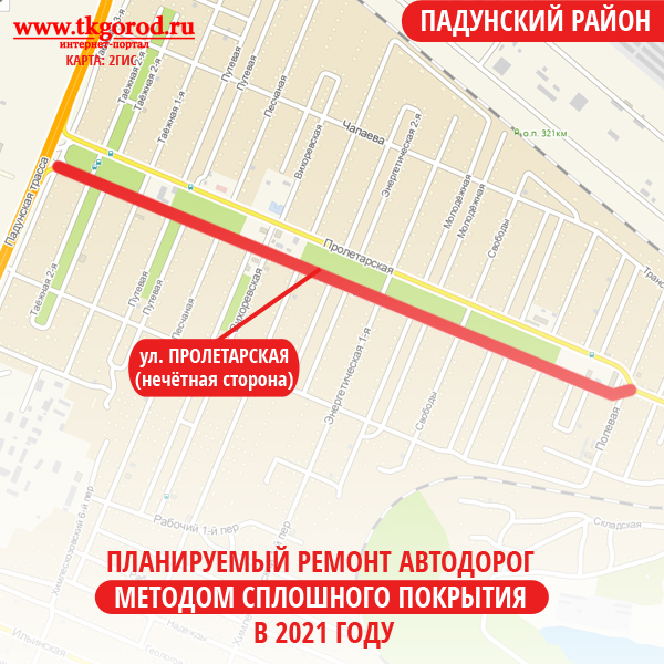 Ремонт дороги методом нанесения сплошного покрытия на нечётной стороне улицы Пролетарской изначально планировался властями Братска на этот год, однако позже планы скорректировали. Метод заключается в том, что старый асфальт срезают, а на его место кладут новый в два слоя. Первый слой (выравнивающий) убирает неровности и ямы, второй делает дорогу гладкой. Метод напоминает капитальный ремонт, за тем лишь исключением, что основание дороги в этом случае не меняют, он также не предусматривает ремонт проходящих вдоль дорог тротуаров, системы освещения, ливневой канализации и так далее. Однако иногда при таком ремонте меняют бордюрный камень.