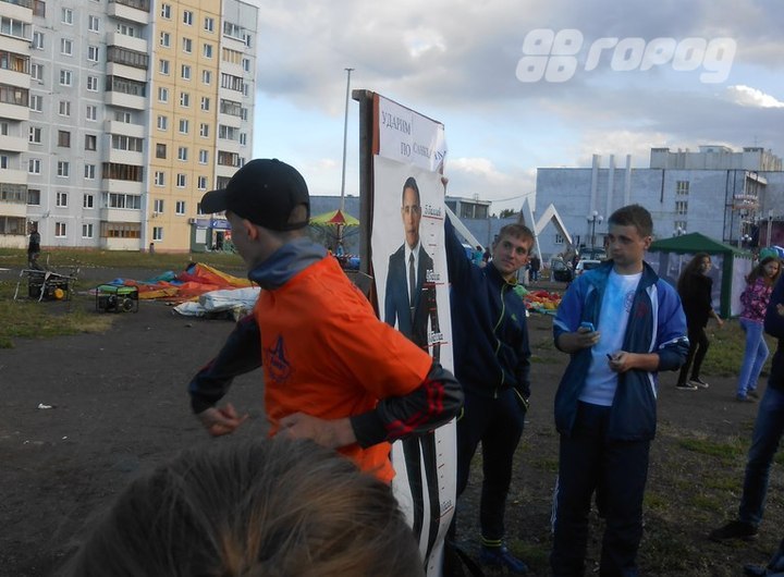 В Братске в День молодёжи все желающие могли пнуть портрет президента США Барака Обамы. Видео необычной акции опубликовал блоггер Андрей Антоненков.